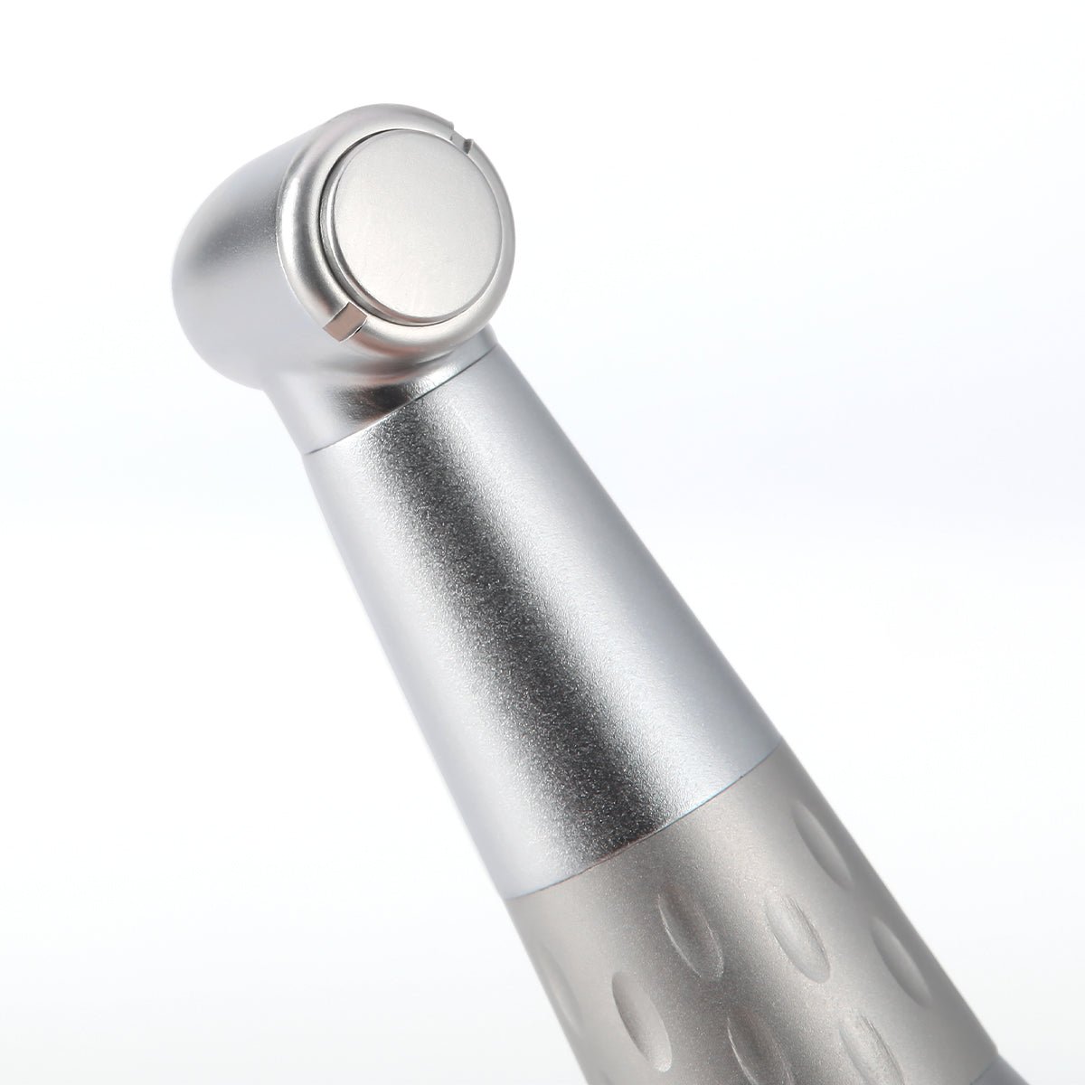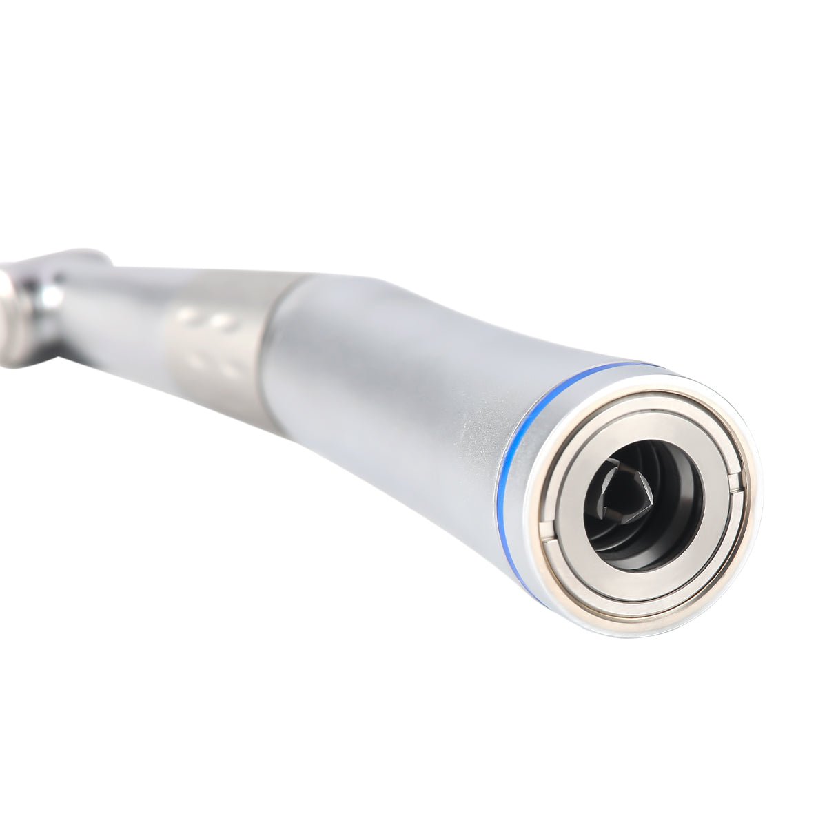Dental 1:1 LED Contra Angle Low Speed Handpiece with E-generator Internal Spray. Push button, simple bur changing. Inner channel, 1 port spray. Superior brightness with E-generator LED.