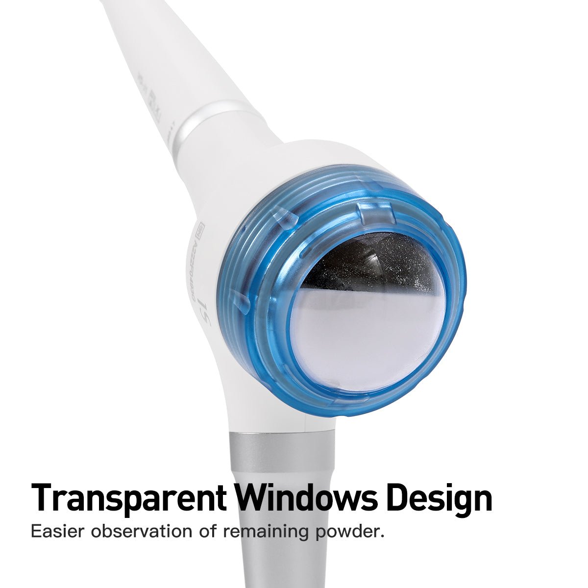 Dental Air Polisher Prophy Teeth Whitening A1S Detachable 360° Rotating Handpiece With 4 Holes Quick Coupler. Ergonomic Design. Transparent Windows Design, easier observation of remaining powder. Two-section air-polishing handpiece design. Detachable handpiece. The handpiece can be rotated 360°.