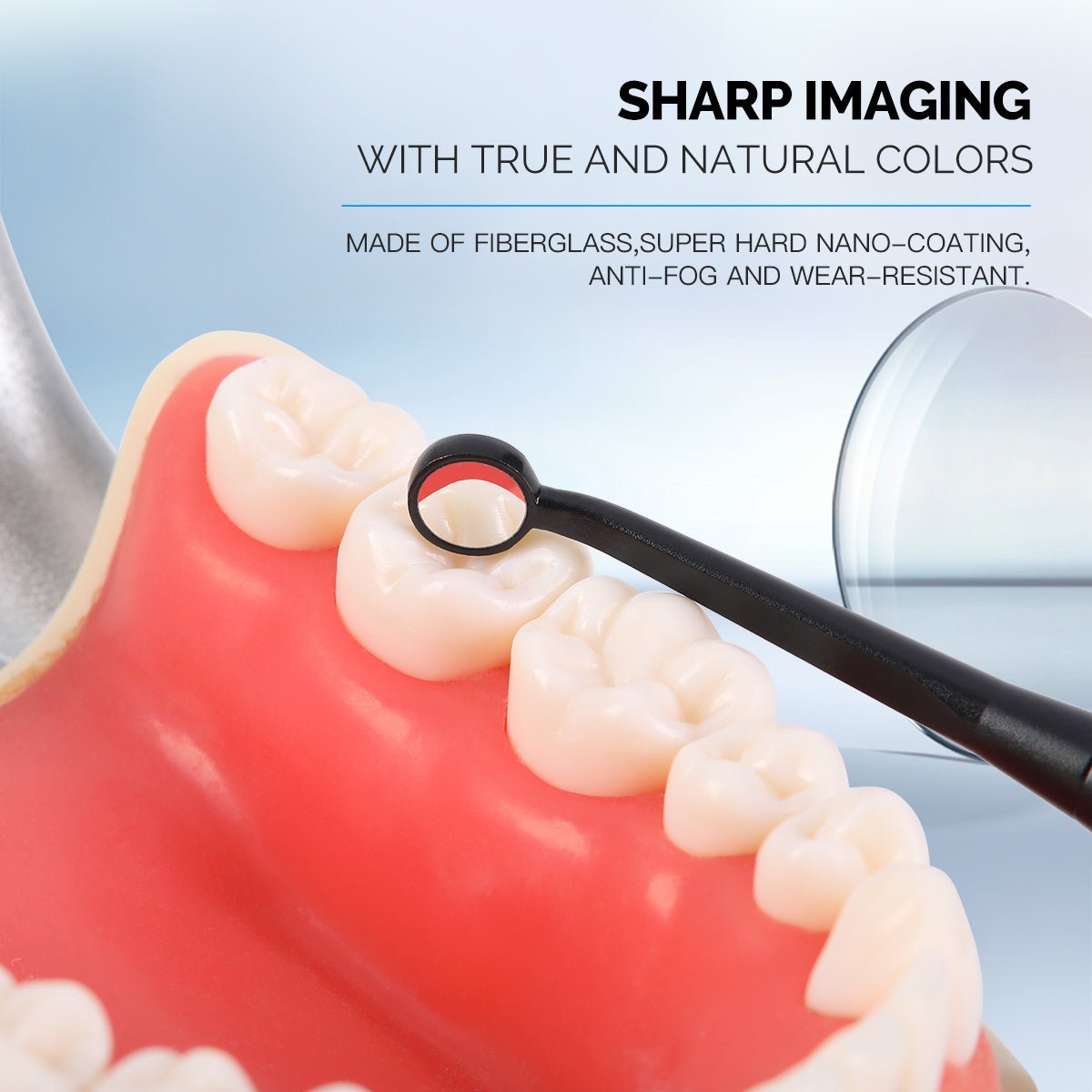Dental Micro Mouth Mirror Sterilizable Reflector Odontoscope 4 Sizes 3mm /5mm /2*7mm /3*9mm. Sharper and more accurate mirror imaging and the most natural color possible with 36 layers of optical coatings. Aluminum alloy material. Deep black finish eliminating any reflection of interfering light.