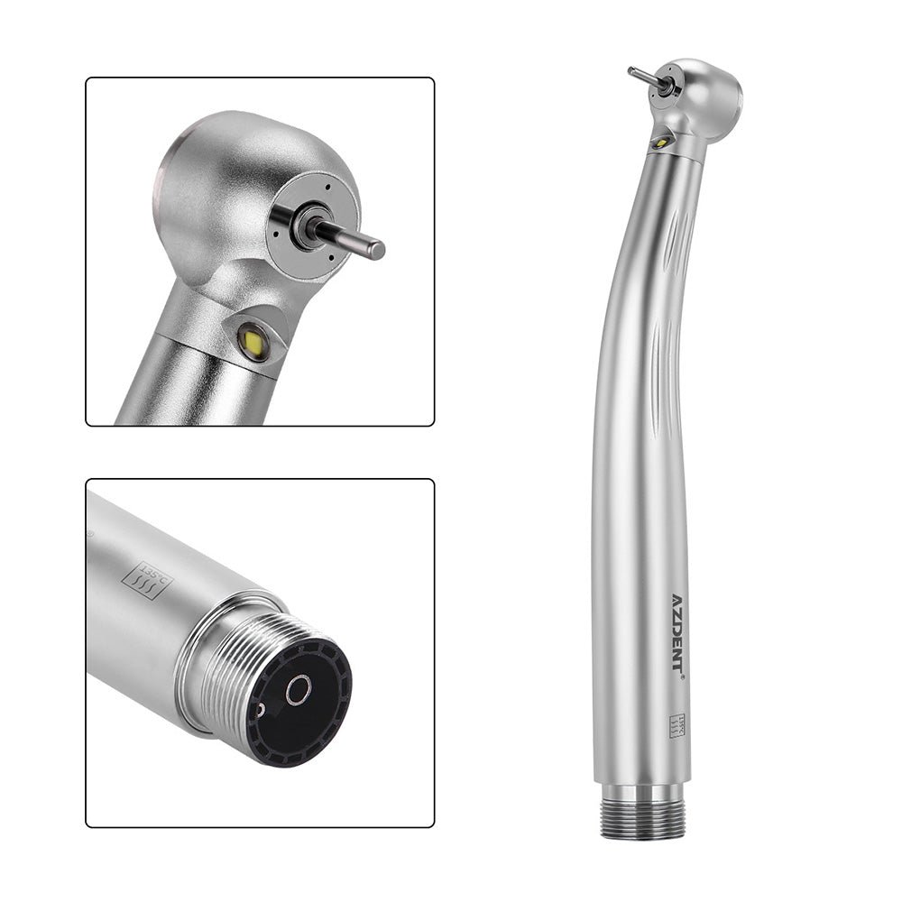 LED High Speed Handpiece, 2/4 Hole,Torque Head, Push Button, E-generator, Triple Water Spray, Ceramic Bearings. Professional LED light source. Special design of cartridge, more stable, more quiet, more powerful. 135℃ Autoclavable. Triple Water Spray, cooling efficiency is much higher. Atomization is smoother. Convenient push button chuck. Automatic integrated handpiece, head is more stable, longer service life.
